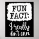 Póster Fun Fact I Really Don’t Care, Sarcastic Quotes Fun