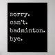 Póster Funny Badminton Player Sorry Cant Badminton Bye