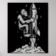 Póster Funny Bigfoot Flying Into Space With Stars And Cos