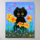 Póster Funny Black Cat Art Spring Daffodils Creationarts