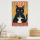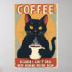 Póster Funny Black Cat Coffee Art