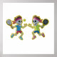 Póster Funny Cartoon Skeletons Playing Padel Tennis – 3D