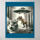 Póster Funny Cat Selfie With Alien Ufo And T-rex Dinosaur