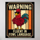 Póster Funny Chicken Rooster Humor Warning Fluent In Fowl
