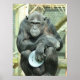 Un chimpancé lindo que tiene un CD pero desafortunadamente no tiene reproductor de CD.