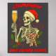 Póster Funny Christmas Skeleton Champagne And Candy Canes