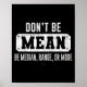 Póster Funny Don't Be Mean, Be Median Graphic Sarcastic S