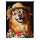 Póster Funny Fluffy Dog with Hat, Glasses & Hawaiian Shir