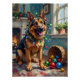 Póster Funny German Shepherd Tangled in Christmas Lights
