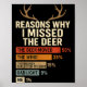 Póster Funny Hunter Reasons Why I Missed The Deer Hunting