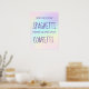 Si necesitas un poster inspirador para tu pared, ésta es la perfecta. Excelente consejo - "No confundas tu espagueti con tu confeti" - además de un hermoso degradado de arcoiris pastel. ¡Gracioso!