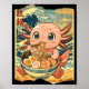 Póster Funny Kawaii Axolotl Ramen Noodle Bowl Japanese Wa