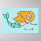 Póster Funny Mermaid nombre personalizado y poster de col