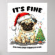 Póster Funny Pug It's Fine I'm Fine Christmas Dog For Wom