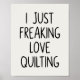 Póster Funny Quilting Love Saying Quilters Black White