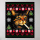 Póster Funny Smoking Cat Meme Ugly Christmas Sweater For
