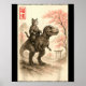 Póster Funny Sumi-e Kawaii Cat Riding Dinosaur Japanese A