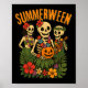 Póster Funny Summerween Skeletons Luau Fiesta Halloween B