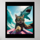 Póster Funny Surfing Cat Selfie With Shark Meme _1