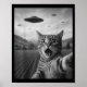 Póster Funny Surprised Ed Cat Selfie With Alien Ufo Cat U