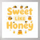 Show off your sweet side with this adorable "Sweet Like Honey" graphic! This cute and playful pun features a bubbly yellow font, surrounded by happy little bumblebees and overflowing pots of honey. It's a 'bee-utifully' charming design, perfect for anyone with a sweet personality, a love for bees, or a 'hunny' of a good sense of humor.