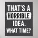 Póster Funny That's A Horrible Idea What Time_ Sarcastic