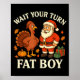Póster Funny Turkey Vs Santa Wait Your Turn Thanksgiving