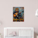 Este impresionante cuadro capta a un majestuoso león, adornado con gafas de sol y una chaqueta de cuero, llevando su "himno grunge" en una guitarra eléctrica. Se encuentra sobre una cornisa de madera, rodeada de hojas de otoño dispersas y un fondo de madera angustiado. El uso de brochas audaces y texturadas por el artista enfatiza la energía cruda de la escena y la actitud de "Rock or Die", dando vida a este inesperado concierto.