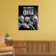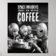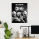¡Incluso los invasores del espacio necesitan un impulso a la cafeína! Esta foto vintage en blanco y negro captura a un grupo de cuatro seres extraterrestres en espacios tomando una pausa café en un café.
