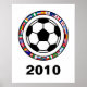 Anillo de 32 banderas nacionales de equipos participantes en torno al fútbol. La competición de fútbol más importante de 2010. Sucediendo en Sudáfrica. Puede cambiar el color de fondo, el texto.