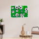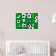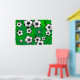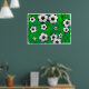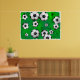 Ilustracion de muchos balones de fútbol dando vueltas en contra de un fondo verde manchado y texturado. Imagen disponible en varios regalos y productos.