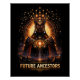 A radiant Afrofuturist goddess crowned with constellations stands as a timeless guardian of destiny, blending ancient power with cosmic futurism.