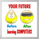 Promueve computadoras con este divertido diseño con una cara antes y después mostrando lo importantes que son las computadoras para tu vida. Excelente para un profesor de computación.