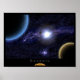 Un 100% Photoshop. Dos gigantes del gas, y otro planeta desconocido en órbita lenta, se forman galaxias en el fondo.