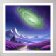 Trae un toque de asombro y misterio a tu espacio con esta fascinante obra de arte. Con una galaxia de espiral verde brillante que ilumina un vibrante paisaje de montaña violeta bajo un cielo estrellado nocturno, esta pieza combina la belleza de la naturaleza con la magia del cosmos. Perfecto como arte mural para soñadores, espectadores y amantes de los paisajes surrealistas, este diseño le da un ambiente tranquilo pero de otra índole a cualquier habitación. Ideal para impresiones, posters, lienzos o decoración casera, esta escena de fantasía cósmica seguro despertará imaginación e inspiración.