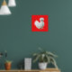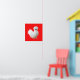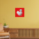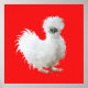 Una gallina Seda blanca pintada sobre un fondo rojo