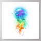 Grandes medusas de azulejo brillantes, de dibujos artísticos, con largos tentáculos en blanco, pintadas con fondo multicolor de acuarela. Mariscas arcoiris.