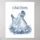 Una gallina amistosa azul y blanca con tipografía de impresión simple para decoración única de guardería. Una introducción simple, alegre y divertida a los animales, la vida silvestre y la naturaleza para tu pequeño. Esto quedaría muy bien en la habitación de cualquier niño o en la sala de estar también. Obra de arte y diseño original de acuarela caprichosa por Tuzi Williams.