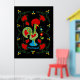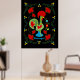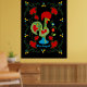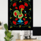 Los portugueses de la zona de Barcelos han moldeado animales de arcilla, especialmente gallos, desde tiempos antiguos. Pero entre 1940 y 1960, el gallo Barceló se convirtió en un símbolo del turismo portugués. Después de 1960, comenzó a asociarse con la leyenda del peregrino salvado de la horca. El gallo Barceló evolucionó y se convirtió en un símbolo de identidad, primero de Barcelos y luego de Portugal. En el siglo XXI, el gallo fue redescubierto por turistas de todo el mundo y por artistas de las zonas más variadas. El gallo pasó de desconocido a estrella nacional. En septiembre de 1935, Portugal estuvo representado en Ginebra con una exposición de arte popular, donde el Galo de Barcelos tuvo su estreno internacional. A partir de ese momento, el gallo siempre ha recibido elogios y premios en varios lugares del mundo. Los primeros gallos eran pequeños objetos, pero hoy hay gallos de todos los tamaños. El color negro apareció recién en los años 50 debido a la escasez de tinta de color. Los gallos más coloridos aparecieron recién en los años 30, ya en el siglo XX. Los primeros gallos fueron silbatos o paletizadores. Hoy en día encontramos gallos decorativos en cerámica, algunos incluso son piezas de arte moderno o monumentos. ¡No hay ningún turista que visite Portugal que no se lleve un gallo en su maleta! Hay gallos en todo tipo de souvenirs, llaveros, imanes, bolsas, toallas y camisetas. Fue a partir de 1950 que el gallo de los Barcelos que el mundo conoce hoy se hizo popular. Se ve moderno y elegante, con corazones rojos, cola sembrada y un gran escudo. Los corazones rojos pintados están inspirados en el bordado y las joyas de Minho. El gallo está asociado con una leyenda. El milagro de salvar a un peregrino falsamente acusado se atribuye a Santiago (São Tiago, en portugués) y está territorialmente vinculado al camino a Santiago de Compostela. En el Museo Arqueológico de Barcelos hay una cruz de granito del siglo XIV aludiendo a esta leyenda, que representa el ya mencionado "milagro". El arte, la historia, la leyenda y la religión se juntan en la figura del gallo portugués, contribuyendo a hacerlo fascinante y objeto de culto entre nacionales y extranjeros. Este gallo verde con decoración floral y colorida atraerá a los descendientes portugueses y portugueses, turistas y viajeros, y a todos los que aprecian la cultura popular. Hace un buen regalo de cumpleaños para un amigo especial. El gallo portugués de la suerte llena nuestro hogar de alegría con su sencillez y sus colores vivos.