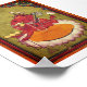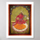 Ganesha se prepara para lanzar su loto. Miniatura de Basohli. "Atacado en un naranja dhoti, su cuerpo es completamente rojo. En los tres puntos de su diminuta corona, se han arreglado los créditos en ciernes. GaŪeśa sostiene en sus dos manos derechas el rosario y una taza llena con tres modakas (un cuarto sustituido por el tronco curvado está a punto de ser probado). En sus dos manos izquierdas, GaŪeśa sostiene un loto grande por encima y un hacha por debajo, con su mango inclinado contra su hombro. En el Mudgalapurāęāęana (VII, 70), para matar al demonio de egotismo (Mamāsura) que lo había atacado, GaĂeśa Vighnarāja le tiró su loto. Incapaz de soportar la fragancia de la flor divina, el demonio se rinde a Gaęśa".