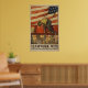 Un poster de la Primera Guerra Mundial mostrando a hombres trabajando en un astillero, bajo una bandera estadounidense creada por Hibberd Van Buren Kline.