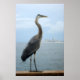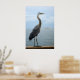 Perón gris en el muelle después de comer un bocadillo de pescado