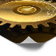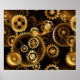 Sin soldadura, metalizado, latón, engranajes dorados sobre un fondo oscuro y oxidado. Estilo Steampunk.