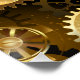 Sin soldadura, metalizado, latón, engranajes dorados sobre un fondo oscuro y oxidado. Estilo Steampunk.