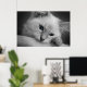 Foto de un gatito de ragdoll en blanco y negro con un toque de color