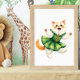 Esta encantadora impresión artística muestra un adorable gatito atigrado naranja que lleva un hermoso vestido verde esmeralda con patrones celtas dorados. Los brazos del gatito están levantados en celebración, con la lengua juguetonamente fuera, creando una escena alegre y enérgica. Perfecto para agregar encanto y fantasía a guarderías, habitaciones de niños o cualquier espacio de amantes de los gatos.