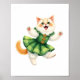 Póster Gatito Naranja Feliz con Vestido Verde Céltico Bai