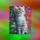 Gatito de Navidad, árbol de Navidad y luces. Arte generado por IA adorable.