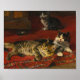 Los gatitos de Julius Adam the Younger (Alemán, 1852-1913) es una encantadora pintura antigua con tres gatitos curtidos que descansan sobre una alfombra roja vibrante. Famoso por sus entrañables y detallados retratos de gatos, el trabajo de Adam capta la inocencia y el juego de los mascotas en un ambiente acogedor y doméstico. Esta elegante obra de arte vintage es un delicioso ejemplo de pintura animal del siglo XIX y es perfecta para los amantes del gato y coleccionistas de obras de arte clásicas. Utilice las herramientas de diseño para agregar texto personalizado o personalizar la imagen.