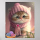 Póster Gato Adorable con Sombrero y Bufanda de Tejido Ros